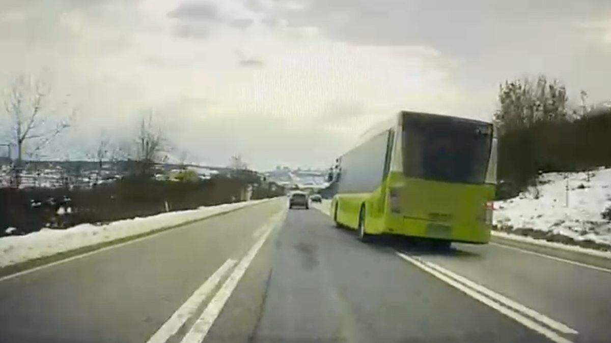 Kandıra'dan İzmit istikametine doğru hareket halindeki araç, Kocaeli Büyükşehir Belediyesi yolcu otobüsü şoförünün kuralları ihlal etmesiyle kaza tehikesi atlattı.