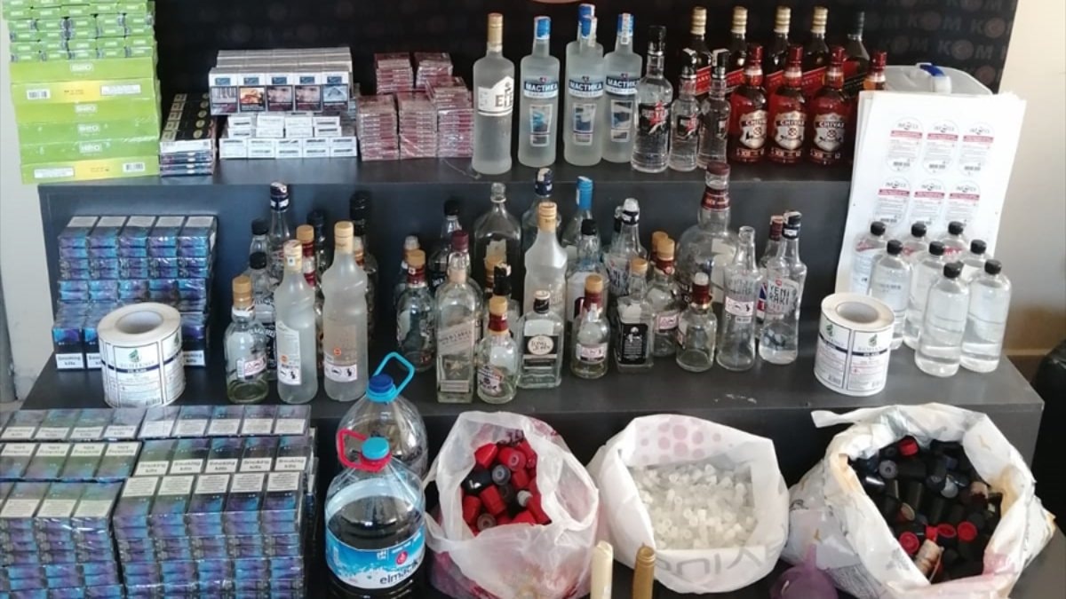 Bu kapsamda Gebze ilçesindeki bir işyeri ve evdeki aramalarda 587 adet doluluk oranları farklılık gösteren 1'er litrelik sahte bandrollü viski, 621 paket gümrük kaçağı sigara, 420 alkol şişesi kapağı, 365 anason aroması, 25 malt aroması, 2 adet 5'er litrelik şişelerde el yapımı viski, 382 etil alkol etiketi, 36 boş alkol şişesi, 8 tane 1'er litrelik etil alkol, 22 alkol yapımında kullanılan şişe kapüşonu ile 1 ruhsatsız tabanca, 1 şarjör ve 6 dolu fişek ele geçirildi.
