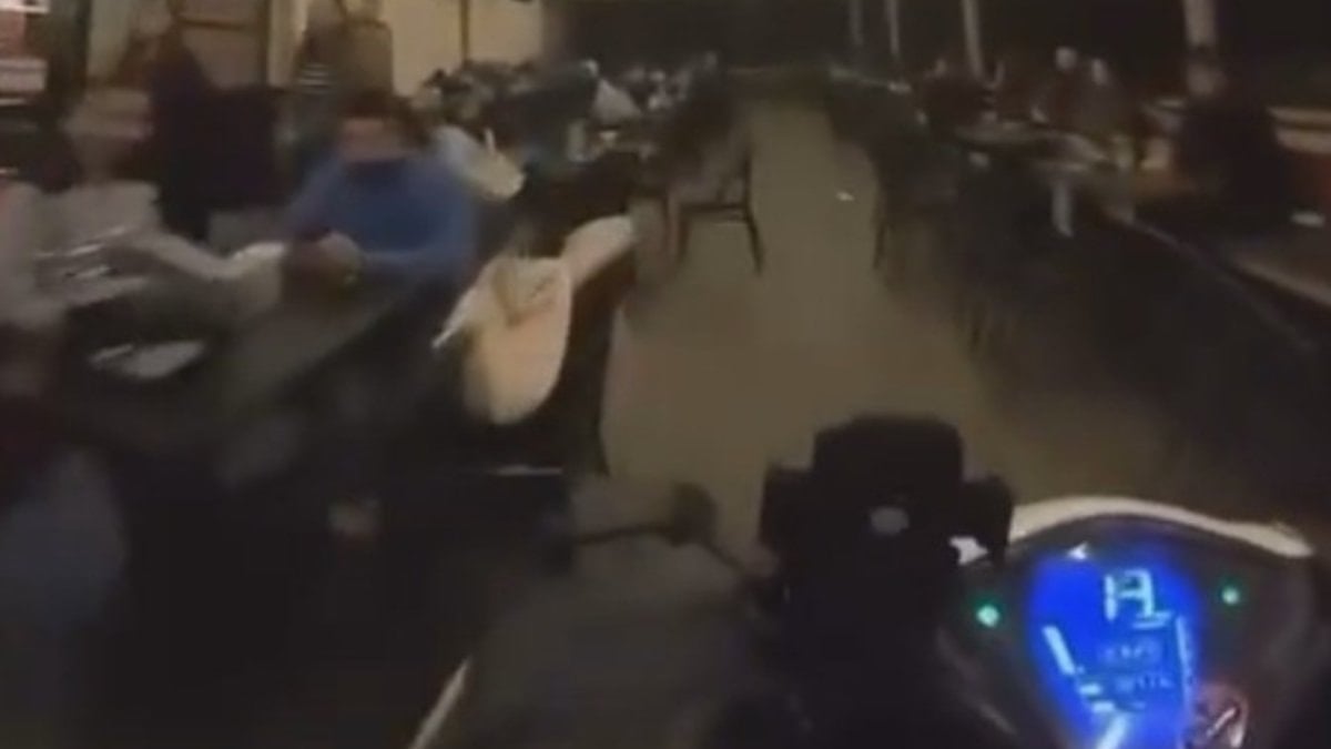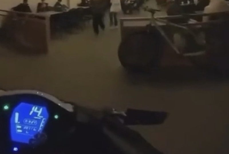 Gebze ilçesinde motosikletiyle alışveriş merkezinin önündeki kafeye girdiği ve müşterilerin bulunduğu masaların arasından geçtiği anları kask kamerasıyla kaydedip sanal medyada paylaşan sürücünün ehliyetine el konuldu, 6 bin 457 TL ceza uygulandı.
