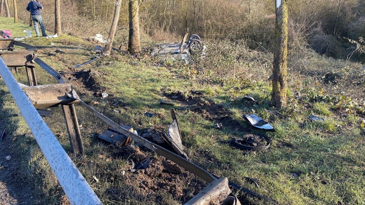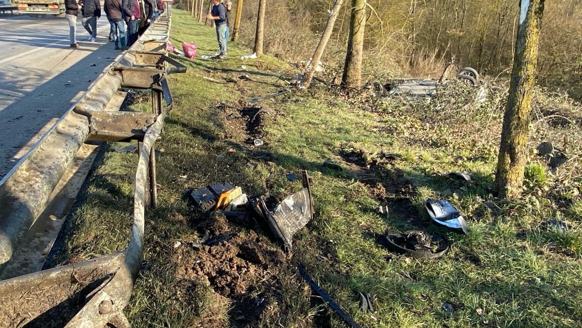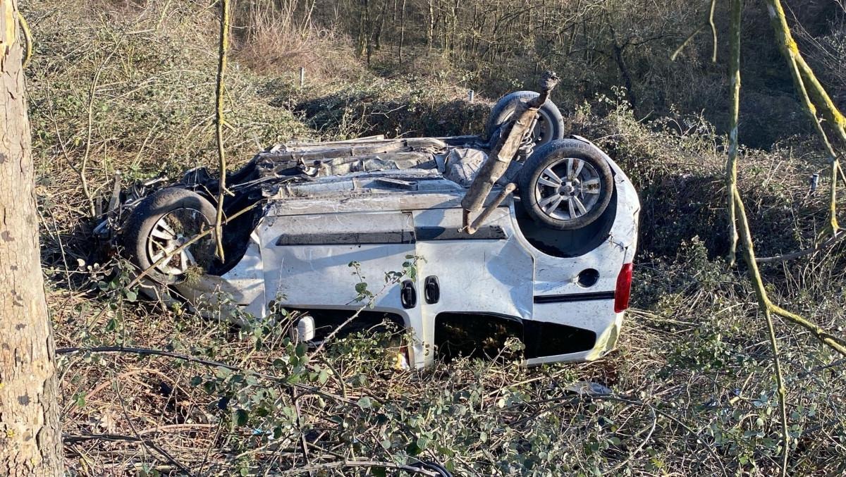Ardından ağaca çarpan araç takla atarak, yoldan 2 metre aşağıya, çalılık alana düşüp ters durdu. Araçtan bazı parçalar yola savrulurken, bazı parçalar ise ağaçta asılı kaldı. İhbar üzerine olay yerine sağlık ve polis ekipleri sevk edildi.