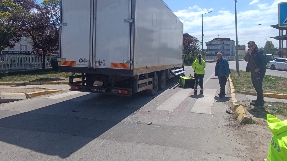 Kazada sürücü, motosiklet ile kamyon arasında sıkıştı.