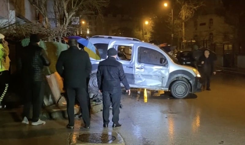 Çarpmanın etkisiyle savrulan hafif ticari araç, park halindeki otomobile ve bir evin bahçe duvarına çarparak durabildi.