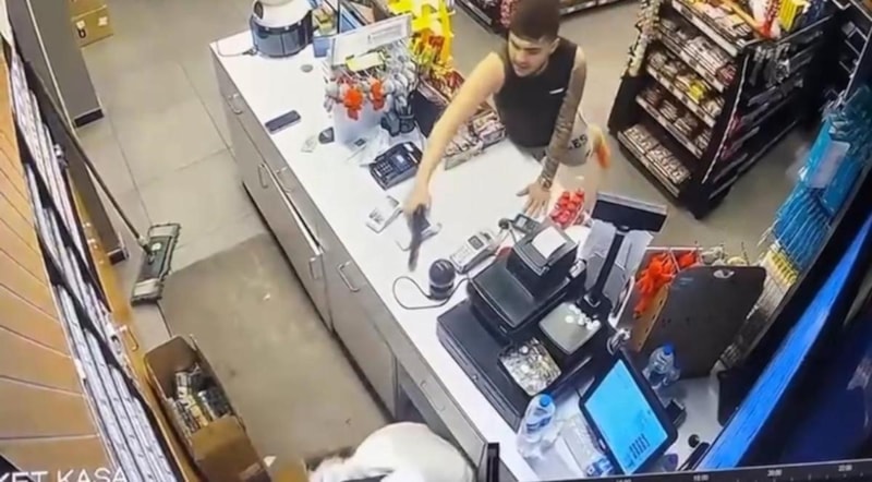Bir akaryakıt istasyonunun marketinde çalışan Toprak Yiğitdoğan ile o sırada içeri giren husumetlisi Yiğit T. arasında kız meselesi nedeniyle bir süre konuştu.