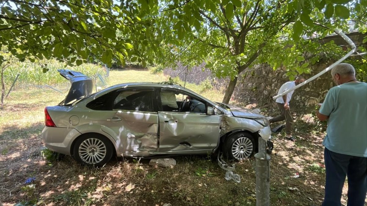 Bariyerleri aşan otomobil akabinde ise 3 metre yükseklikten bahçeye uçtu. İhbar üzerine olay yerine sağlık ve polis ekipleri sevk edildi.