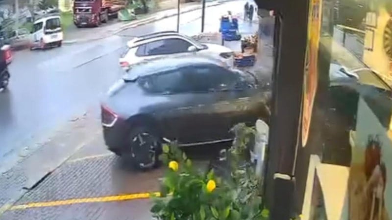 Kocaeli'de kontrolden çıkan cipin şarküteriye daldığı anlar güvenlik kameralarınca kaydedildi.