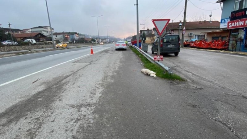 Kocaeli D-100 kara yolu Ankara istikameti Eşme ışıklar mevkiinde seyir halinde olan otomobil sürücüsü Ahmet O., aniden önüne çıkan köpeğe çarpmamak için manevra yaptı.