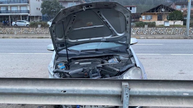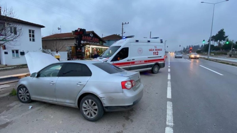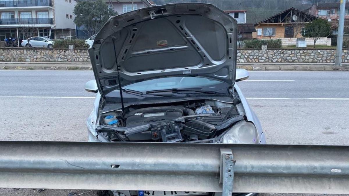 Manevra sonucu kontrolden çıkan otomobil, önce köpeğe ardından yol kenarındaki bariyere çarptı.