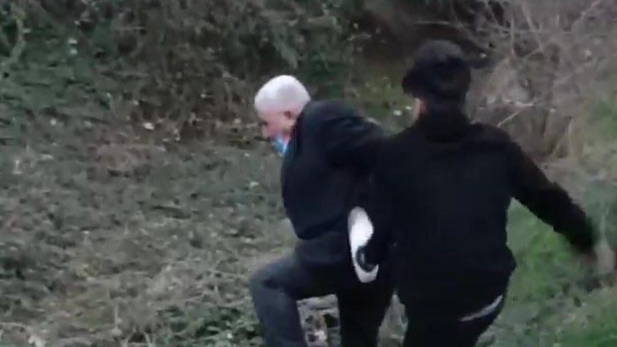 Kocaeli'nin Derince ilçesinde boynuna ip bağladığı sokak köpeğini götüren yaşlı kişiyi gören gençler, şüphelenerek takibe başladı.