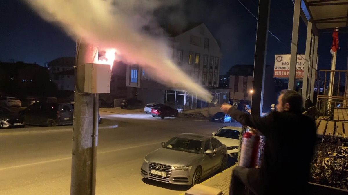 Kocaeli'nin Körfez ilçesinde program sırasında cemevinin önünde bulunan elektrik panosundan alevler yükselmeye başladı.