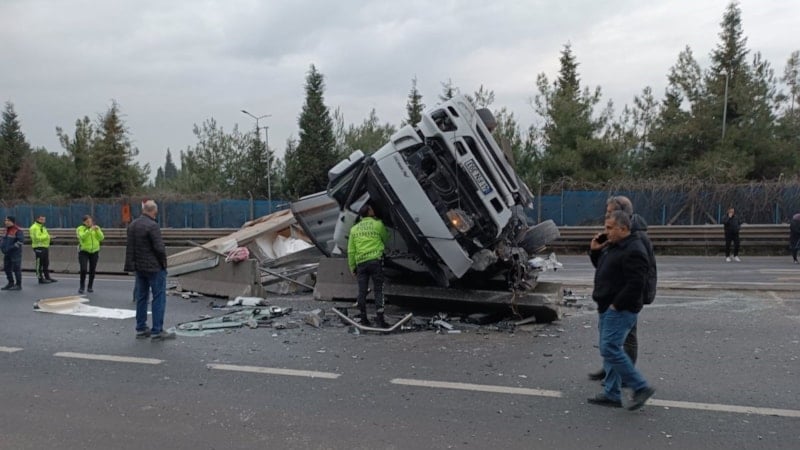 Sürücünün yaralandığı kazada, devrilen tır sebebiyle İzmit-Karamürsel yolu da ulaşıma kapandı.