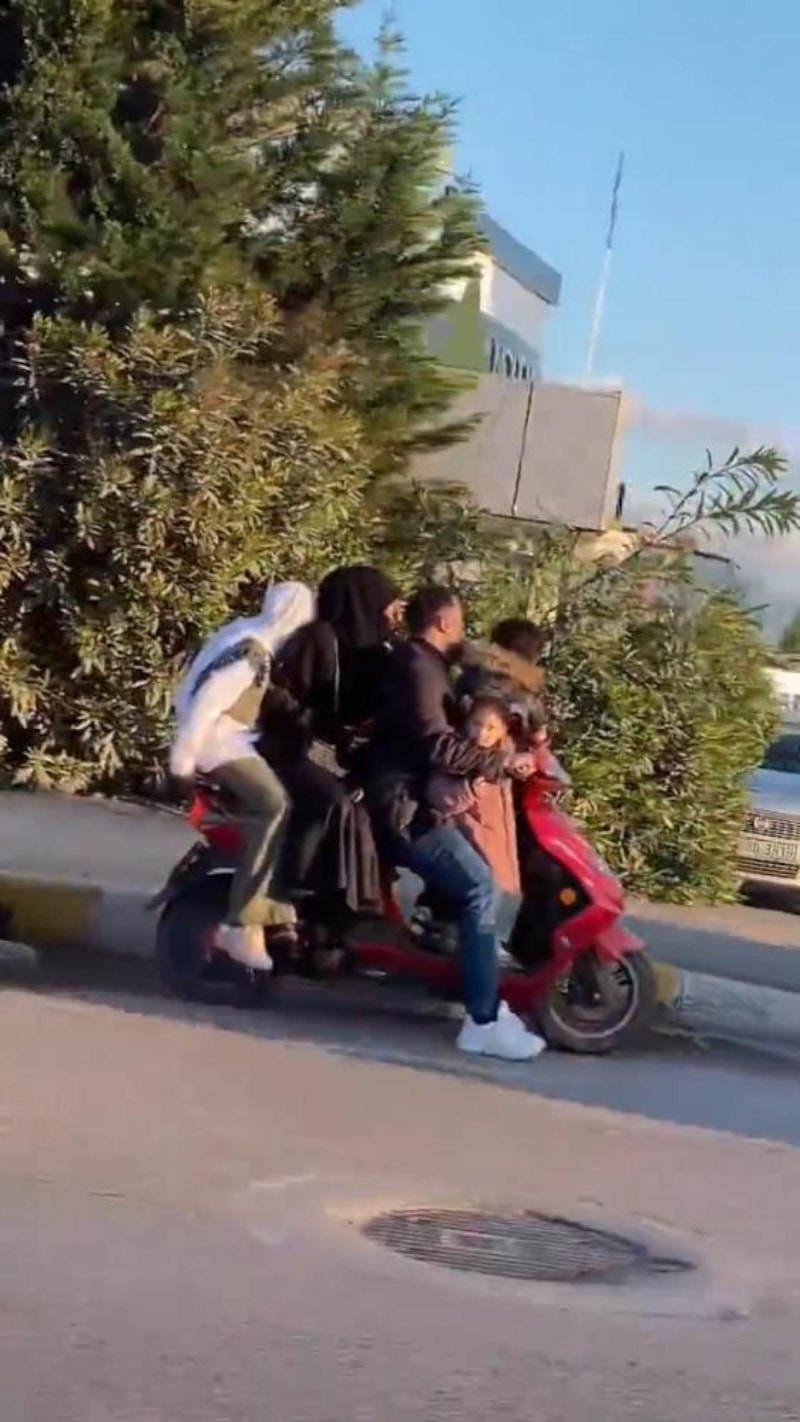 Kocaeli'nin İzmit ilçesinde, aralarında 2 çocuğun bulunduğu 5 kişinin motosiklete binerek Karabaş Mahallesi Oramiral Salim Dervişoğlu Caddesi'ndeki tehlikeli yolculuğu, bir vatandaş tarafından kayda alındı.