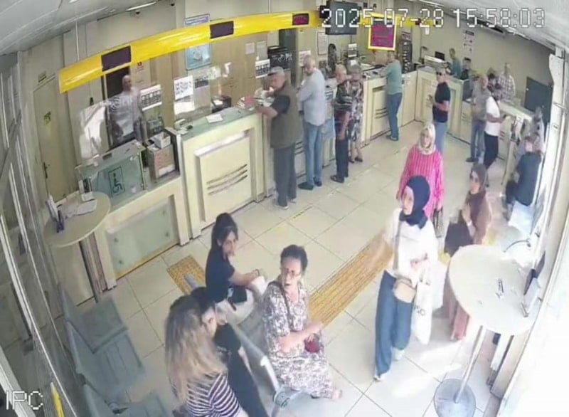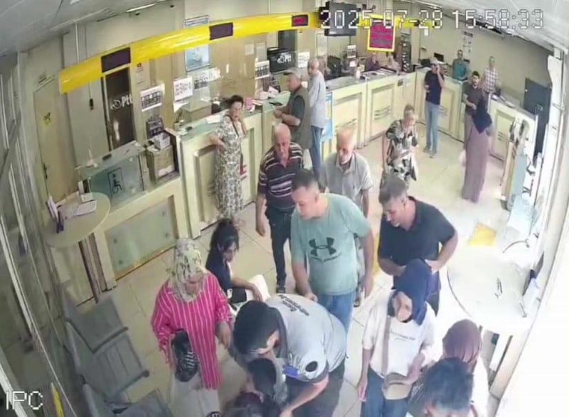 Körfez ilçesindeki bir PTT şubesinde, annesiyle işlem yapmaya gelen küçük çocuğun boğazına kaçan yiyecek parçasını, güvenlik görevlisi Heimlich manevrasıyla çıkardı. Güvenlik görevlisinin soğukkanlı müdahalesi, güvenlik kamerasınca anbean kaydedildi.