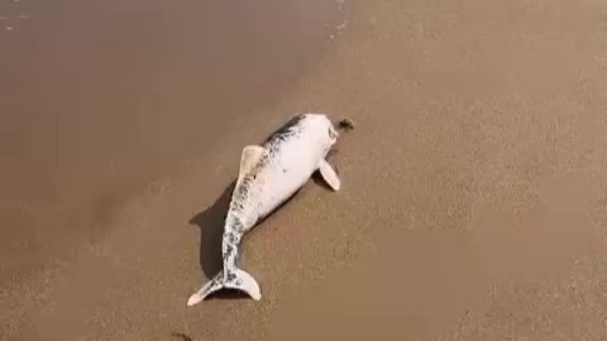Kocaeli'nin Kandıra ilçesinin Sarısu Plajı'nda karaya vurmuş ölü yunus yavrusu, bölgede yürüyüş yapan vatandaşlar tarafından fark edildi.