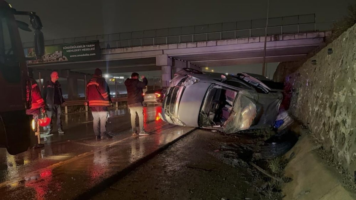 Kocaeli'nin Gebze ilçesi Tembelova mevkii TEM yan yolda seyir halinde olan hafif ticari araç ile otomobil çarpıştı.