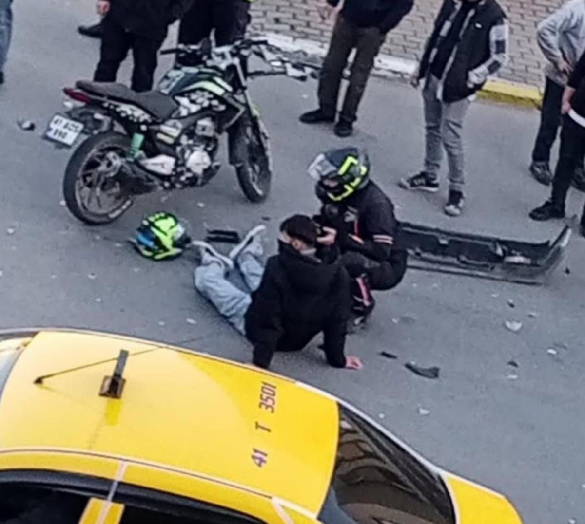 Kocaeli'nin Çayırova ilçesine bağlı Özgürlük Mahallesi'nde sürücüsünün ismi öğrenilemeyen motosiklet ile otomobil çarpıştı.
