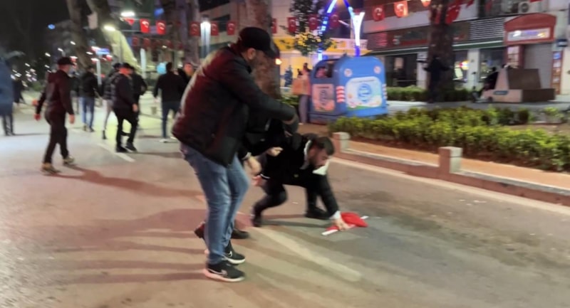 İzmit'te izinsiz gösteri yapan eylemcilerin gözaltına alındığı sırada bir polis memurunun yere düşen bayrağa karşı gösterdiği hassasiyet kameralara yansıdı.