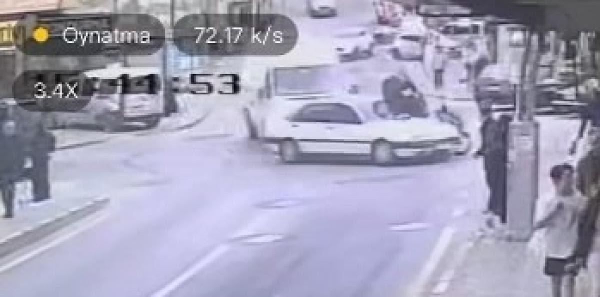 Sürücü, sokaktan caddeye kontrolsüz şekilde çıktı ve Y.K. yönetimindeki 34 KMT 066 plakalı motosiklete çarptı. Ardından, otomobil iki park halindeki araca ve bir cipe de çarptı.