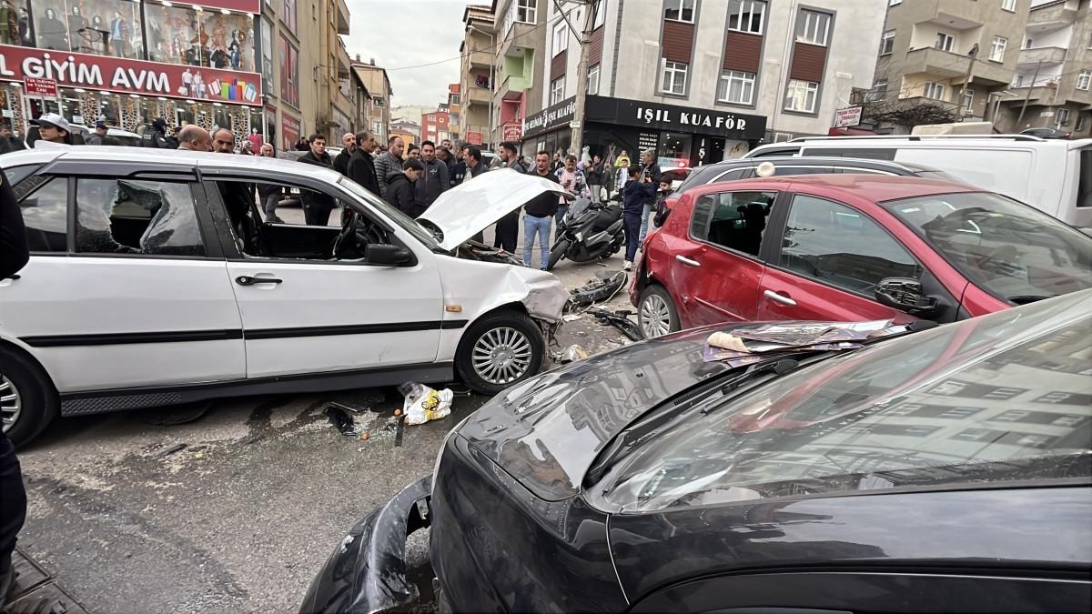 ÖNCE MOTOSİKLETE, SONRA DA PARK HALİNDEKİ ARAÇLARA ÇARPTI