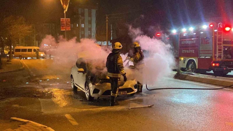 Bölgeye ulaşan itfaiye ekiplerinin müdahalesiyle yangın otomobilin tamamını kaplamadan söndürüldü.