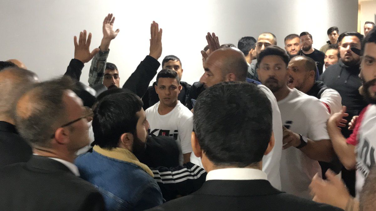 Seyircilerin duruma tepki göstermesi üzerine taraflar arasında arbede yaşandı.