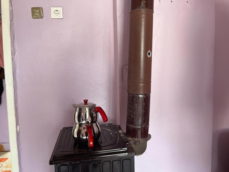 Oturma odasının camını kıran mermi, soba borusunu deldi.