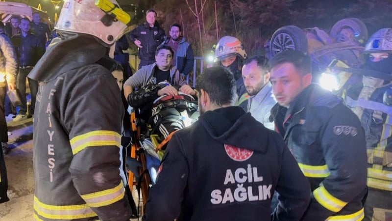 Takla atan araçta bulunan sürücü H.Ö. ile yolcu İ.Ö., olay yerine sevk edilen sağlık ekiplerinin müdahalesinin ardından ambulansla hastaneye götürüldü. İtfaiye ekipleri de güvenlik önlemleri aldı.