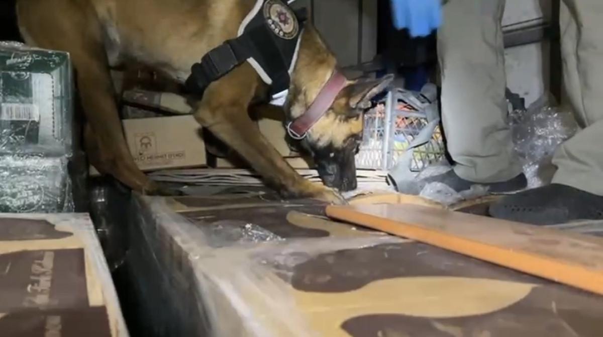 Narkotik dedektör köpeğiyle yapılan aramada, aracın yasal yükü içerisine gizlenmiş 8 paket halinde 9 kilogram kokain ele geçirildi.