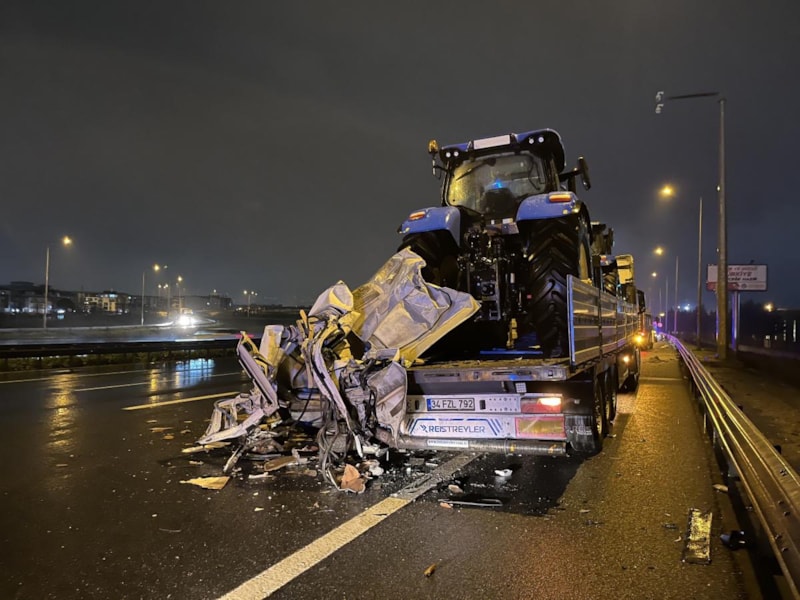 Yola savrulan panelvana G.D. kontrolündeki tırın çarpmasıyla 90 metre sürüklendi.