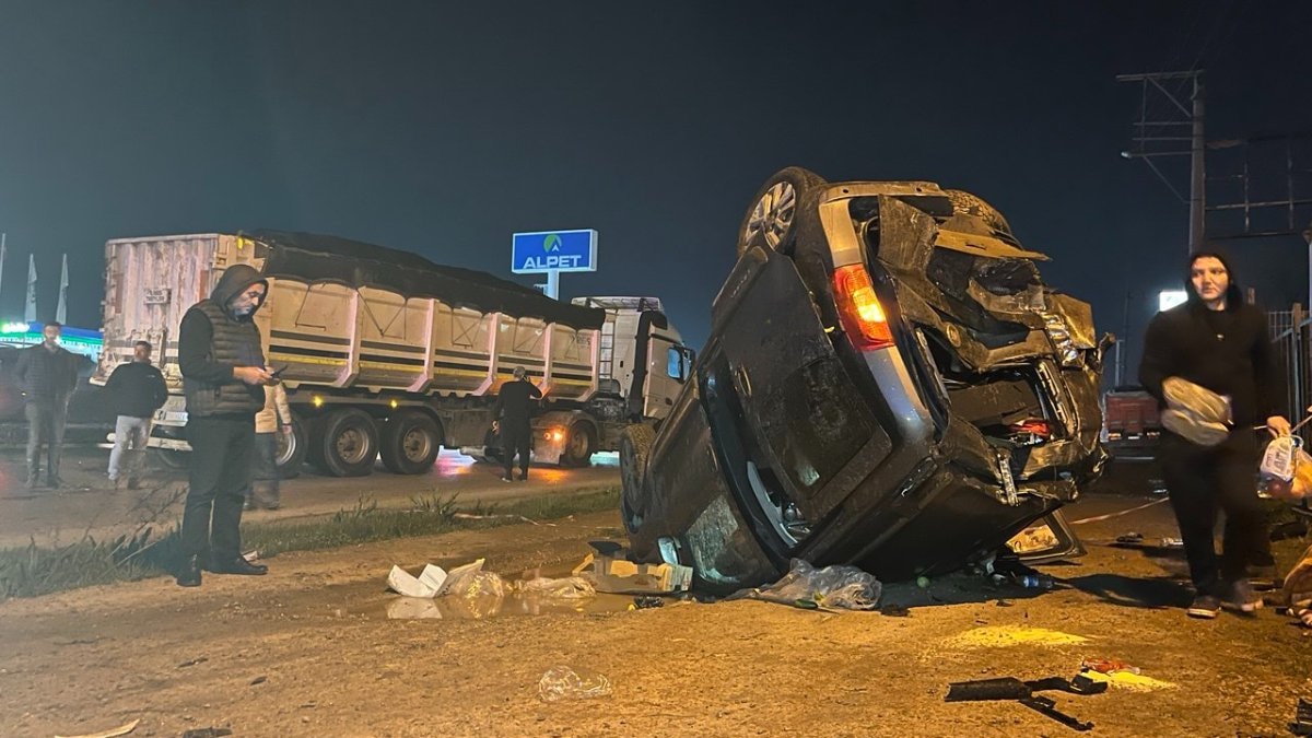 Kocaeli'de tırın çarpması sonucu takla atan hafif ticari araçtaki 3 kişi yaralandı.