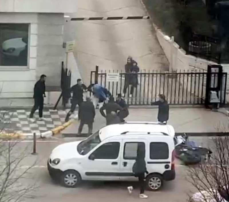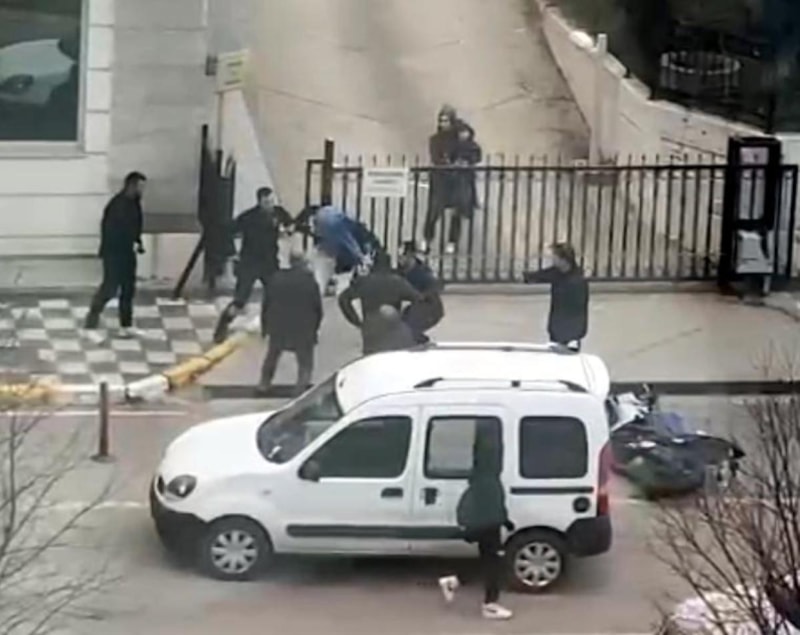Adliye personel giriş noktasında bulunan özel güvenlik görevlisi kavgaya müdahale ederek tarafları ayırdı. Kavga sırasında orada bulunan bir kadın, kucağında bebeğiyle yaşananları korku içinde izledi.