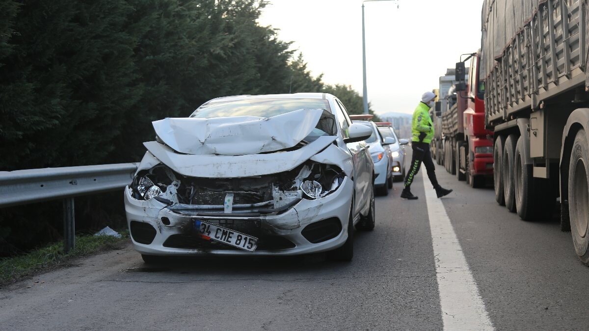 Kocaeli’nin İzmit ilçesi TEM otoyolu Alikahya mevkiinde meydana gelen maddi hasarlı trafik kazası sonrasında trafiğin aniden yavaşlaması sebebiyle, 34 CME 815 plakalı otomobil, 37 DE 005 plakalı cip ve 06 FJ 6948 plakalı otomobil çarpıştı.