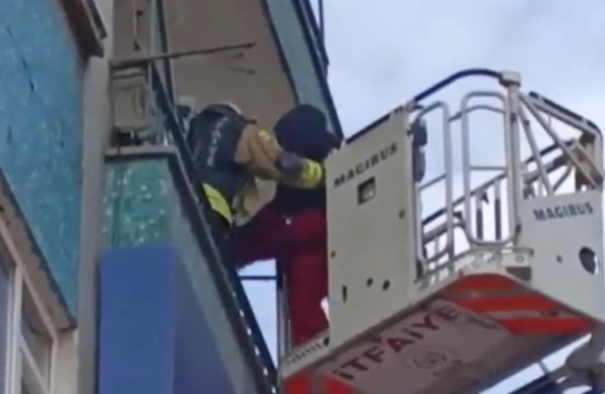 İhbar üzerine olay yerine gelen itfaiye ekipleri, küçük çaplı alevleri kontrol altına alarak yangını söndürdü. Ancak bina içerisindeki yoğun duman, üst katlardaki iki kadının mahsur kalmasına yol açtı. Dumandan etkilenmemeleri için itfaiye tarafından sepetli merdivenle tahliye edilen kadınlar, artan dumanın risk oluşturması nedeniyle tekrar balkonlarına bırakıldı.