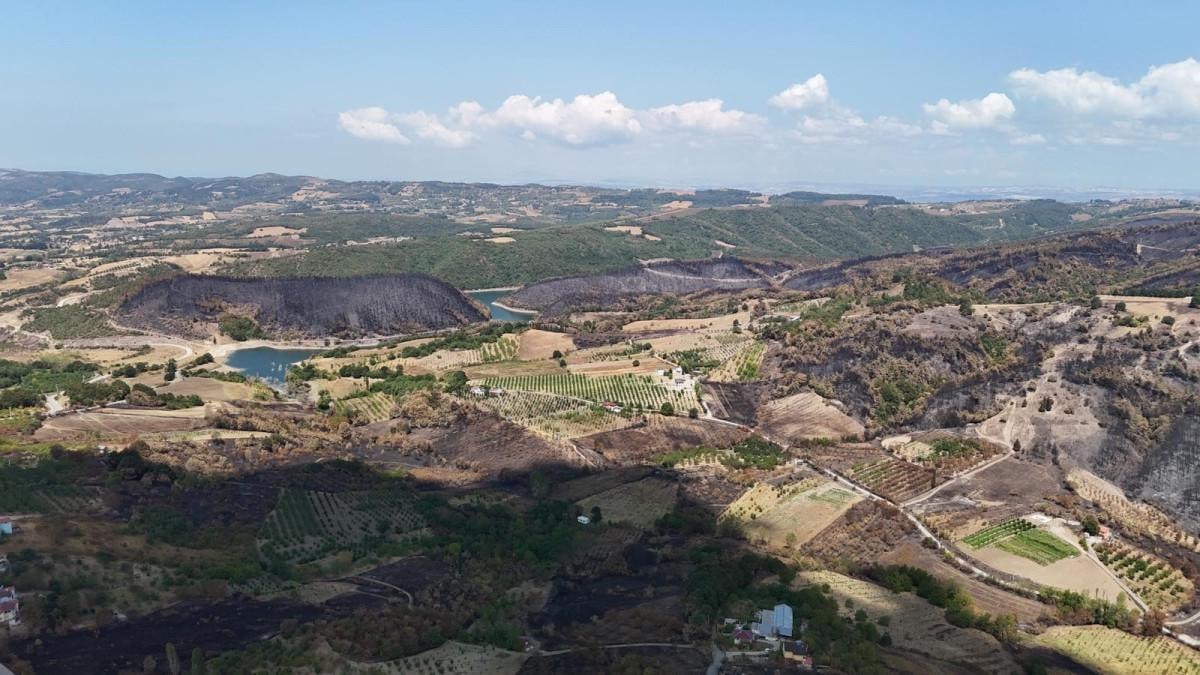 Kocaeli'nin Karamürsel ilçesinde geçtiğimiz günlerde çıkan orman yangınının ardından geriye kalan acı manzara havadan görüntülendi.