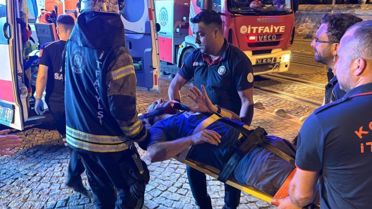 Düştüğü yerden itfaiye erleri tarafından indirilen Nusret K., sağlık ekipleri tarafından hastaneye kaldırıldı.