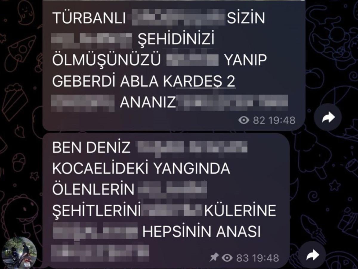 TELEGRAM GRUBUNDA YANGINDA ÖLENLERE KÜFÜR ETTİLER
