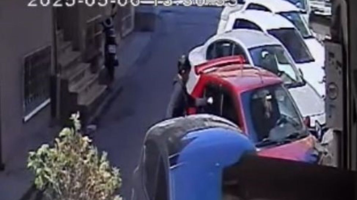 Yaşananlar sokaktaki güvenlik kamerasına saniye saniye yansırken, araç sahibi sabah durumu fark ederek polise ihbarda bulundu.