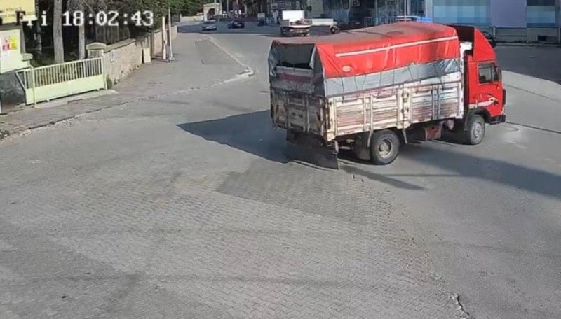 Görüntülerde, iki kardeşin motosikletle ilerlediği, bu sırada kamyonetin kasasının kapağının yan tarafından birden açılmasıyla motosiklet üzerindeki kişilere çarpması yer alıyor.