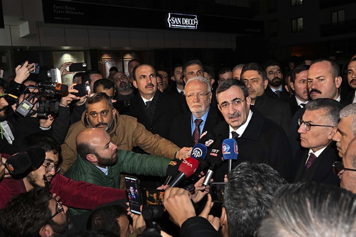 KOP Eylem Planı Bilgilendirme ve İstişare Toplantısı ile Ekonomi Koordinasyon Kurulu için Konya'da bulunan Cumhurbaşkanı Yardımcısı Cevdet Yılmaz, bina çökmesi üzerine bölgeye geldi.