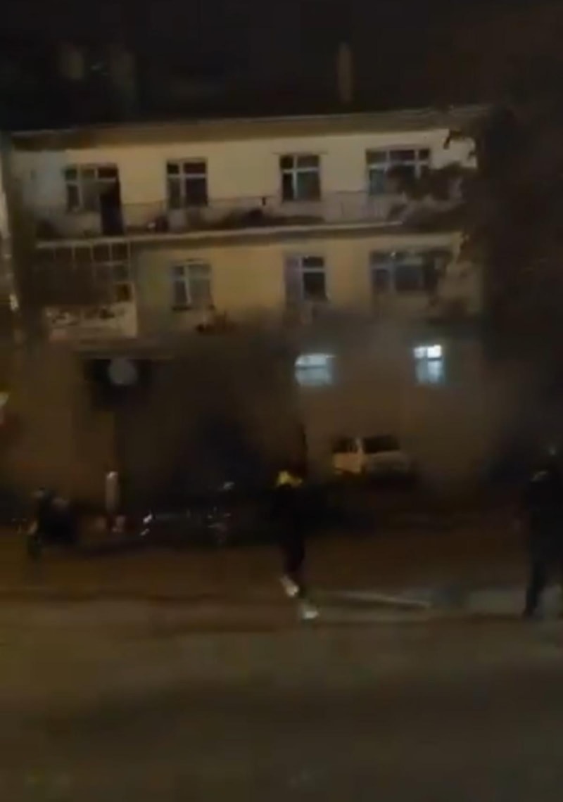 Öte yandan binanın çökmesinden saniyeler öncesi ve çökme anı kameralara yansıdı.