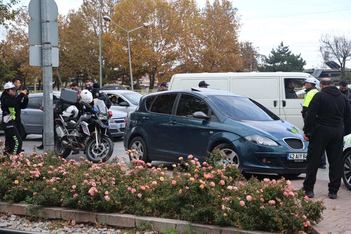 Konya'nın merkez Selçuklu ilçesi Bedir Mahallesi Yeni İstanbul Caddesi üzerinde öğle saatlerinde meydana gelen olayda, İl Emniyet Müdürlüğüne bağlı ekipler, hakkında farklı suçlardan 7 yıl kesinleşmiş hapis cezası bulunan Mehmet G.’nin içerisinde bulunduğu aracı Horozluhan Mahallesi Albayrak Caddesi üzerinde tespit etti.