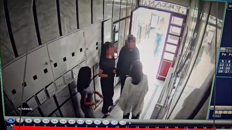 5 kızın apartmana girdiği anlar da güvenlik kameralarına yansıdı.