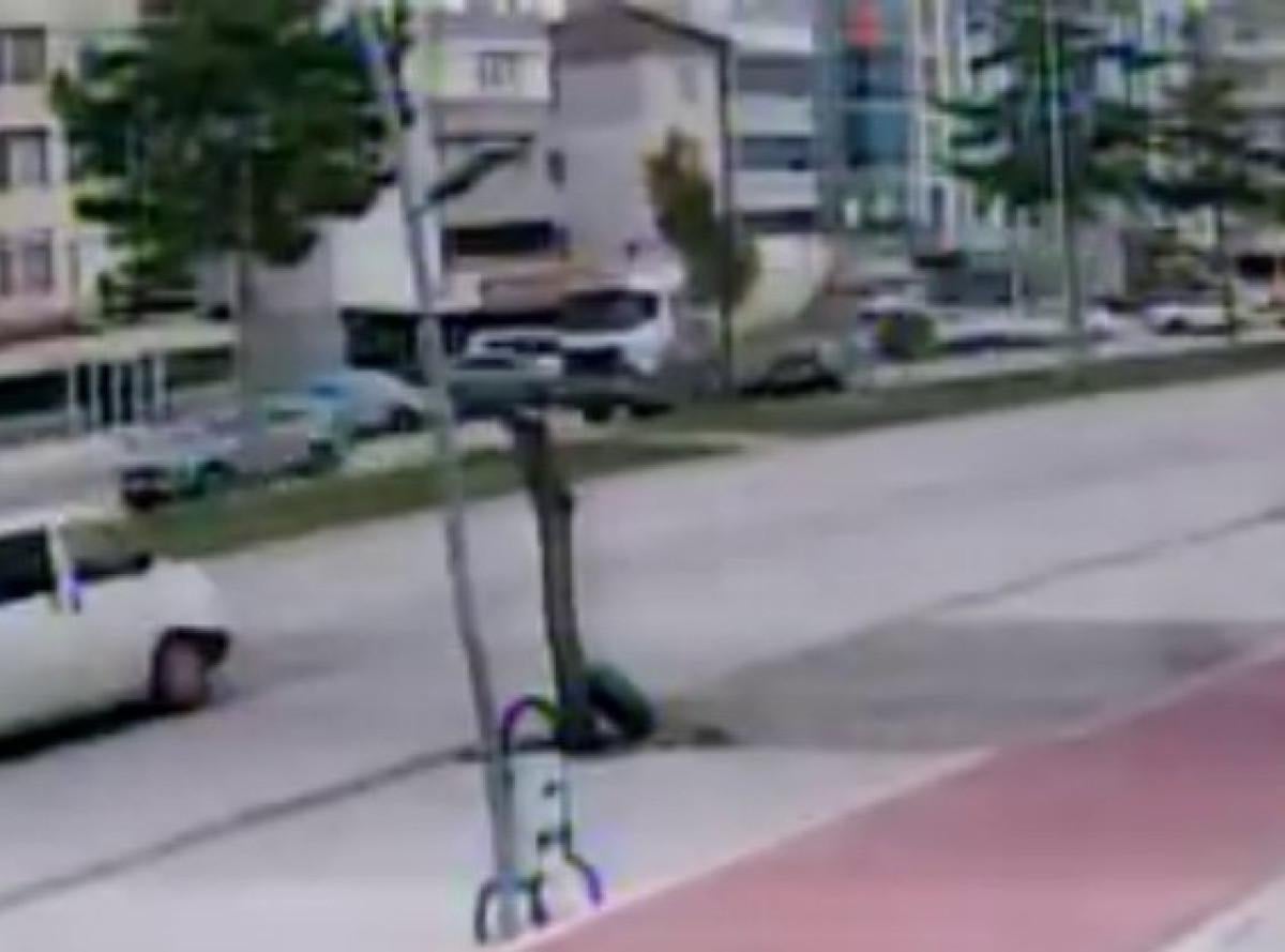 İlçenin en işlek caddesinde yaşanan trafik kazası bir iş yerinin güvenlik kamerası tarafından saniye saniye kaydedildi.