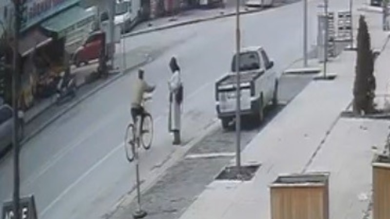 Kadının dalgınlığından faydalanan şüpheli, genç kadının elindeki cep telefonunu alarak hızla bisiklet ile uzaklaştı.