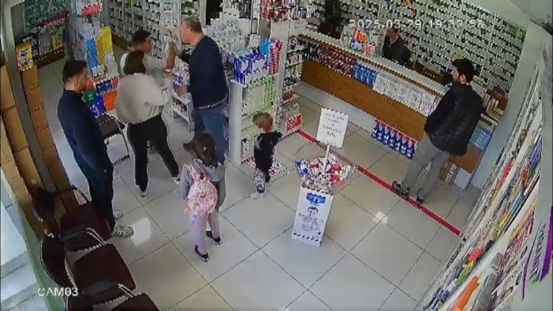 Daha sonra eczanede bulunan ve ilaç almak için bekleyen başka bir vatandaş, tartışmayı yatıştırmak için erkek ve kadını eczaneden uzaklaştırmak istedi.