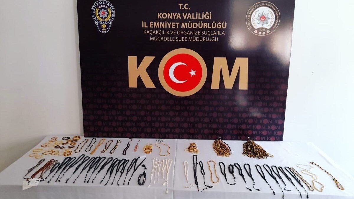 Konya'da İl Emniyet Müdürlüğü Kaçakçılık ve Organize Suçlarla Mücadele Şube Müdürlüğü ekipleri, 'Nesli Tehlike Altındaki Yabani Hayvan ve Bitki Türlerinin Uluslararası Ticaretine İlişkin Sözleşme'ye aykırı tespih, kolye ve bileklik yapılıp satıldığı ihbarı üzerine harekete geçti.