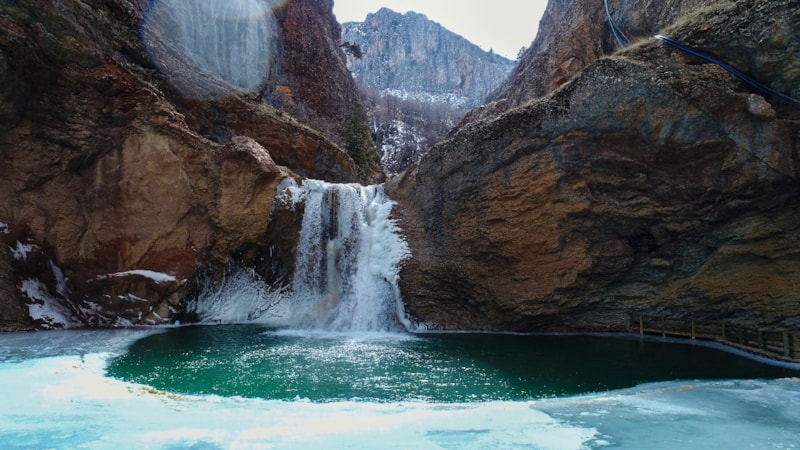 Şelalede oluşan buz sarkıtları, görenleri hayran bıraktı.