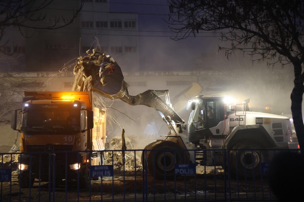 Arama kurtarma faaliyetlerinin sona ermesinin ardından enkaz kaldırma çalışmalarına geçildi. Çok sayıda ekip, iş makineleriyle enkazı kamyonlara yükleyerek alandan tahliye etti. Çöken binanın bulunduğu noktada ise derin bir boşluk oluştu.