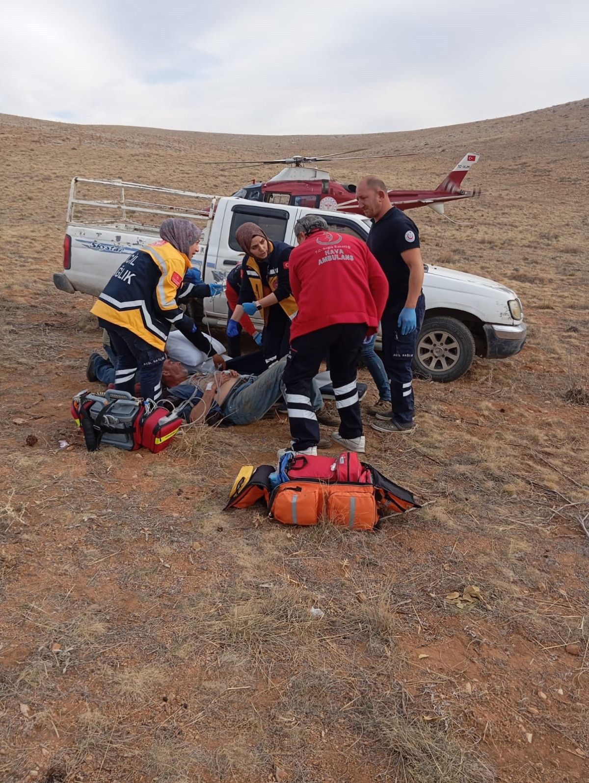Konya'nın Ilgın ilçesine bağlı Avdan Mahallesi yakınlarında bulunan dağlık alana hava ambulansı ile gelen ekipler dakikalarla yarıştı.