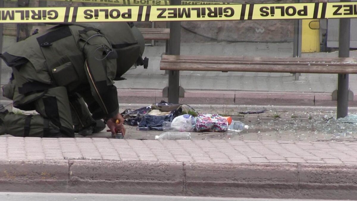 Çağrılan bomba uzmanı, özel kıyafetini giyip, çantayı fünyeyle patlattı. Çantadan tarak, cüzdan, pet su şişesi gibi eşyalar çıktı.