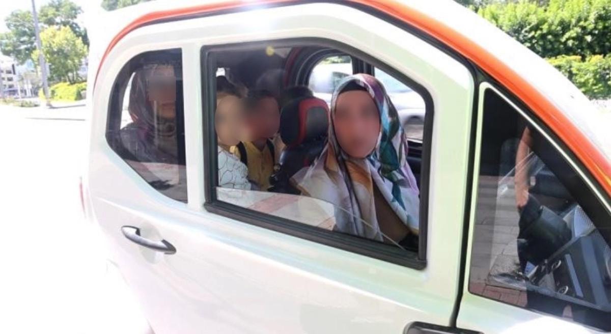 Polis ekiplerinin 5 kişi binmişsiniz sorusuna kadın sürücü, '3 çocuk 1 kişi yapar' diye cevap verdi.